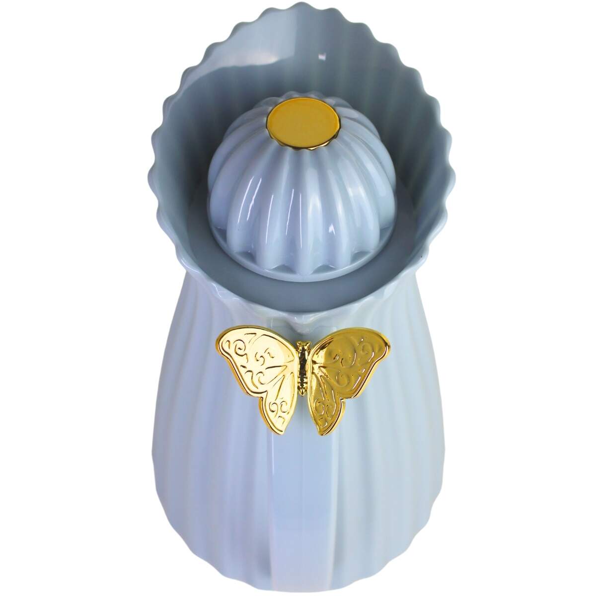 A Garrafa Térmica Azul Céu de Pipa com 1 litro de capacidade é a escolha ideal para quem busca elegância e praticidade na hora de servir. Seu acabamento brilhante, aliado à tampa dourada e ao design moderno, traz um toque sofisticado para qualquer ambiente, seja na mesa do café, no escritório ou na cozinha.