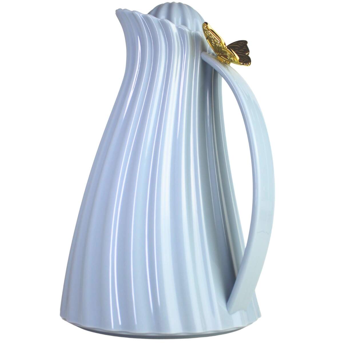 garrafa térmica azul 1 litro café chá abs dourada elegante moderna prática leve durável quente frio ceu de pipa